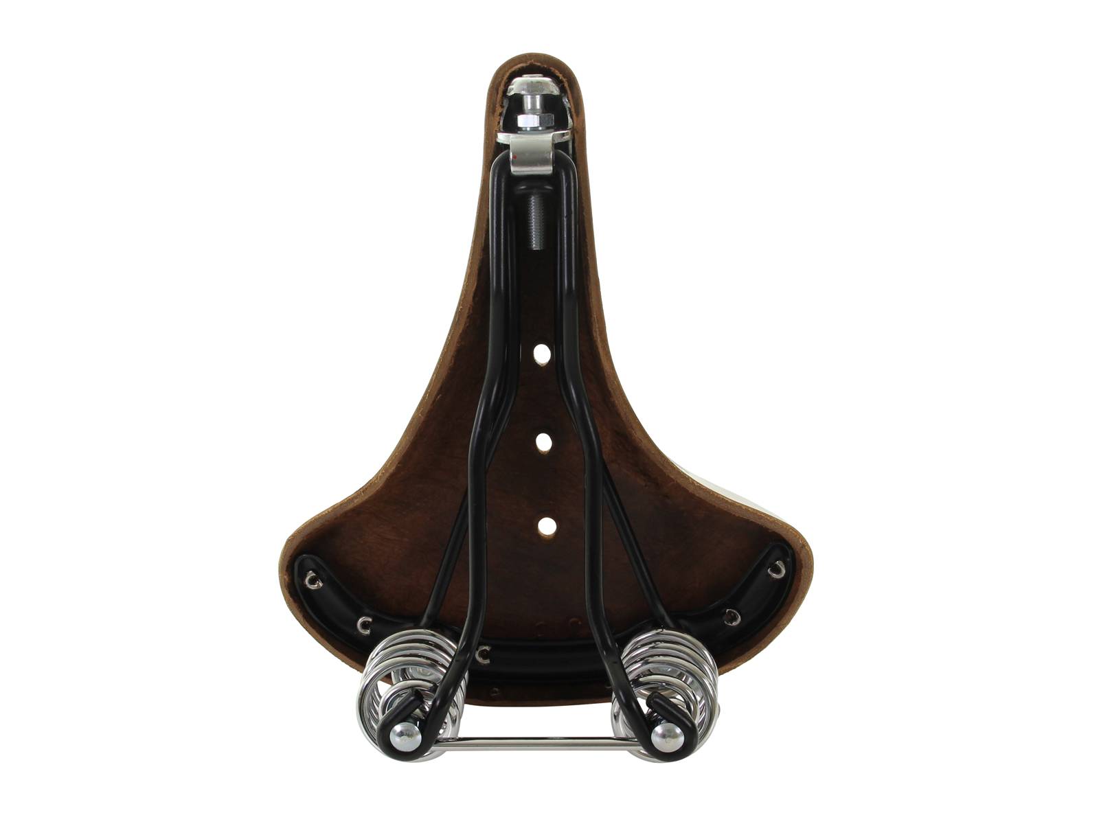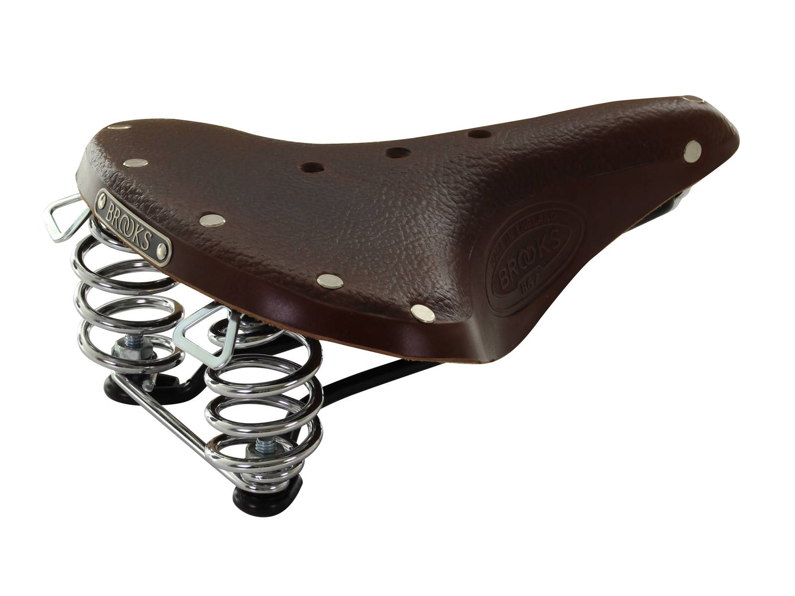 La selle à suspension longitudinale Brooks B67 est une selle classique fabriquée à la main, qui offre un grand confort au cycliste. Le matériau durable permet de rouler confortablement pendant des années. Le matériau en cuir s’adapte à vous et vous soutient pendant que vous pédalez. Les selles Brooks sont déjà connues pour leur bonne qualité. Le logo et le numéro de modèle sont gravés en relief sur la selle. Le pont est en acier élégant peint en noir. La partie arrière de la selle est également renforcée par un pontet spécial Brooks. Deux œillets permettent de fixer une sacoche. Le pont noir est équipé d’une fixation pour une selle Brooks, de sorte que vous pouvez fixer le support de siège directement à la selle du vélo. Attention. Ce modèle n’est pas livré avec une tige de selle. Cette selle se monte directement sur la tige de selle.